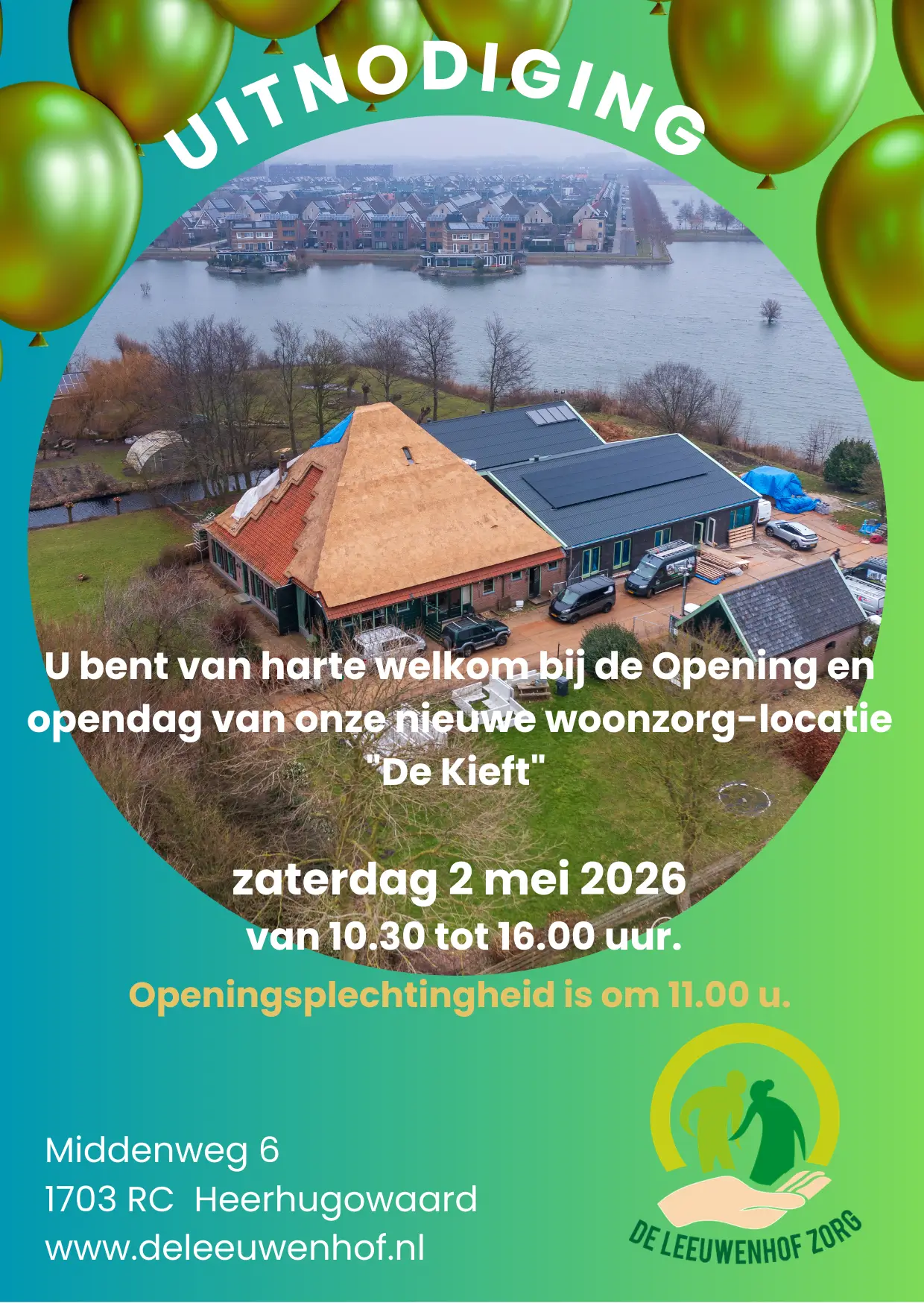 Momenteel wordt er gewerkt aan een nieuwe locatie waar we net als bij bestaande locaties woonzorg gaan bieden aan ouderen met geheugenproblemen (Dementie). Deze locatie gaat “De Kieft” heten. Genoemd naar de gelijknamige stolpboerderij De Kieft aan de Middenweg 6 te Heerhugowaard.